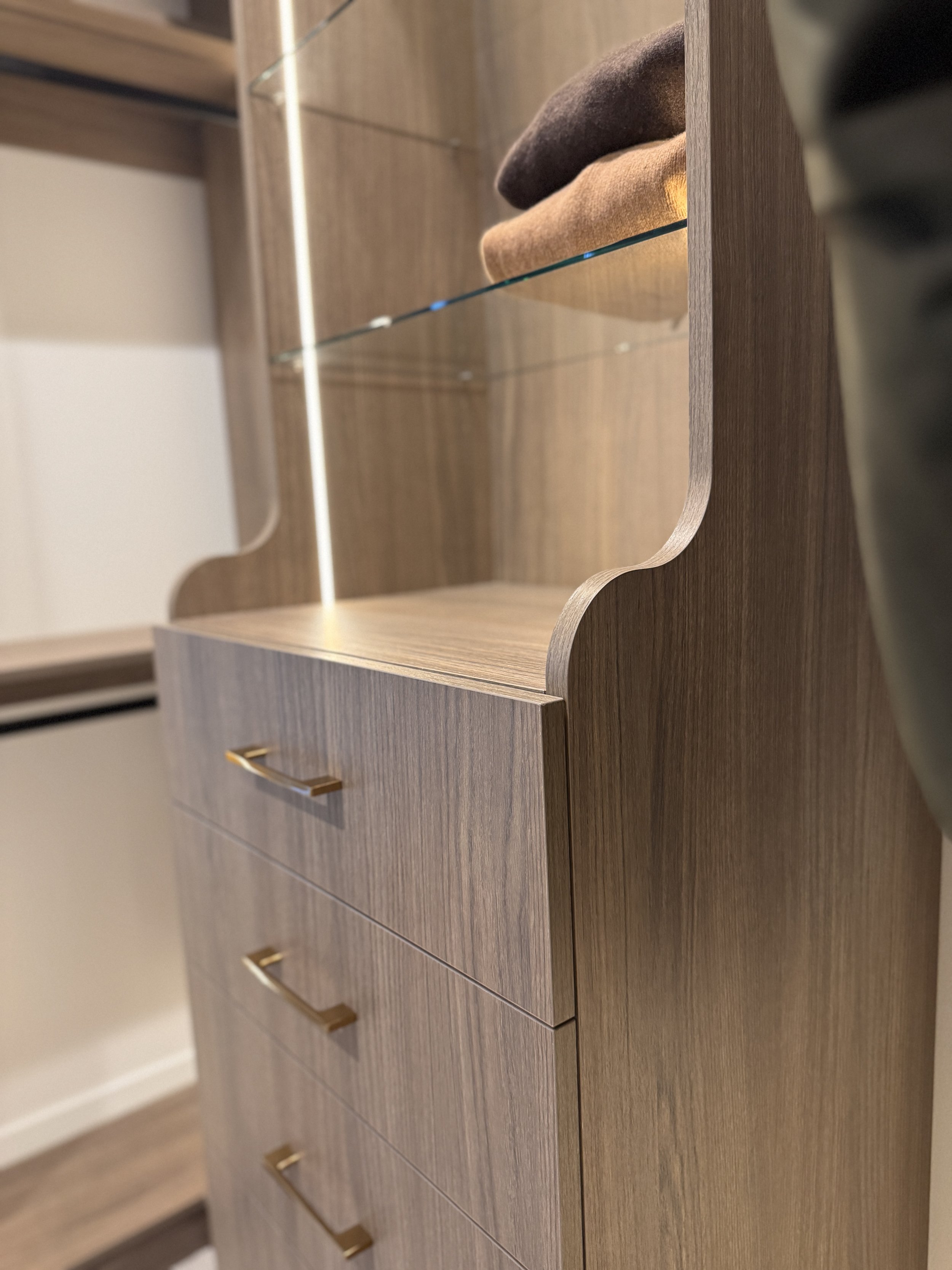Subtle, integrated lighting that elevates everyday organization into a refined, boutique-style experience.